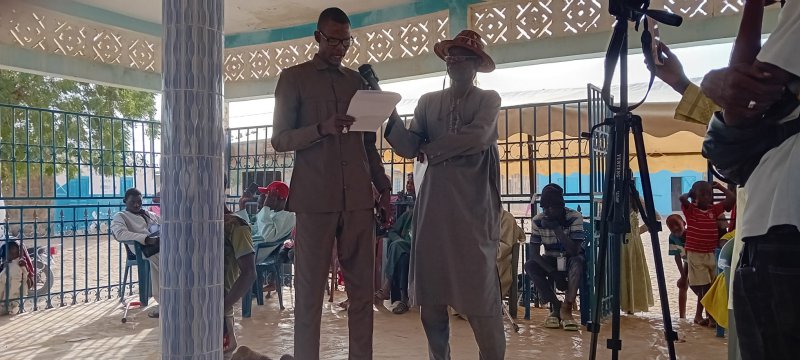 La journée de travail s'est achevée par une manifestation en notre honneur. Une fête de "reconnaissance" en présence des officiels : le maire, le préfet, les responsables des associations, le conseil départemental, les discours en français et en poulard (langue du peuple peul) ont fait état de la démarche des associations, de la situation des personnes handicapées et des réels besoins. La presse était présente ainsi que de nombreuses personnes venues de loin, le tout égayé par une chanteuse talentueuse, elle-même en fauteuil.
