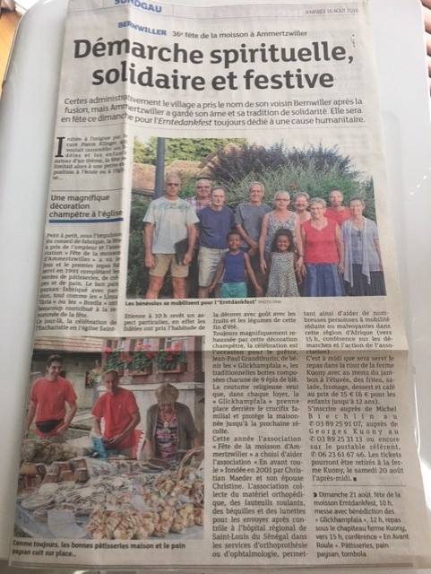 Le 29 octobre 2016, la remise officielle du chèque offert de la part de "l'association de la fête des moissons".