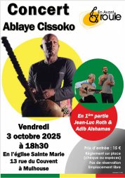 Le concert du 3 octobre dédié à l’association En Avant Roule, par d’une part, les musiciens Jean Luc Roth et Adib Alshamas -respectivement à l’Oud et au « Dab » avec chant et d’autre part Ablaye Cissoko à la Kora et au chant a offert aux quelques 250 personnes présentes en l’église Sainte Marie de Mulhouse évasion, rêve, immersion dans la beauté et la douceur.