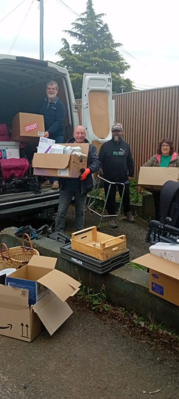 Nous remercions nos amis du Bas Rhin -Obernai, Strasbourg, et les autres- pour ce don conséquent qui nous est arrivé grâce à Gilbert ce dimanche matin 13 avril 2025. Sylvie, Christine, Michel W. et Michel S. furent présents à la réception du matériel.