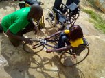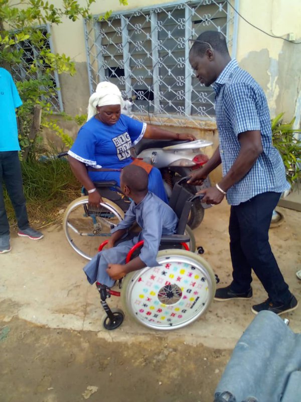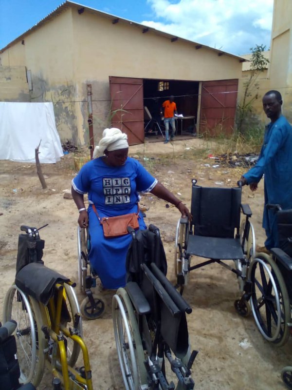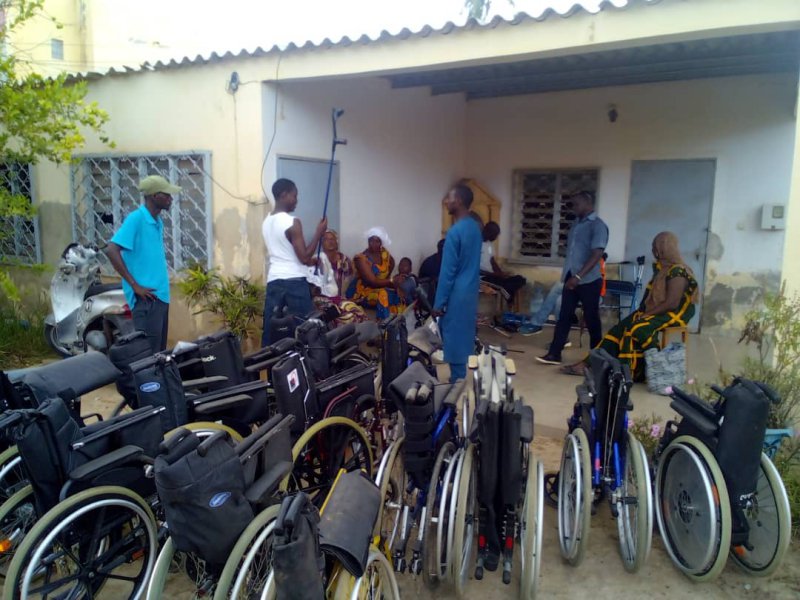 Paul Dione remet quelques fauteuis roulants, arrivés en juin dernier, aux personnes handicapées de Saint-Louis.
